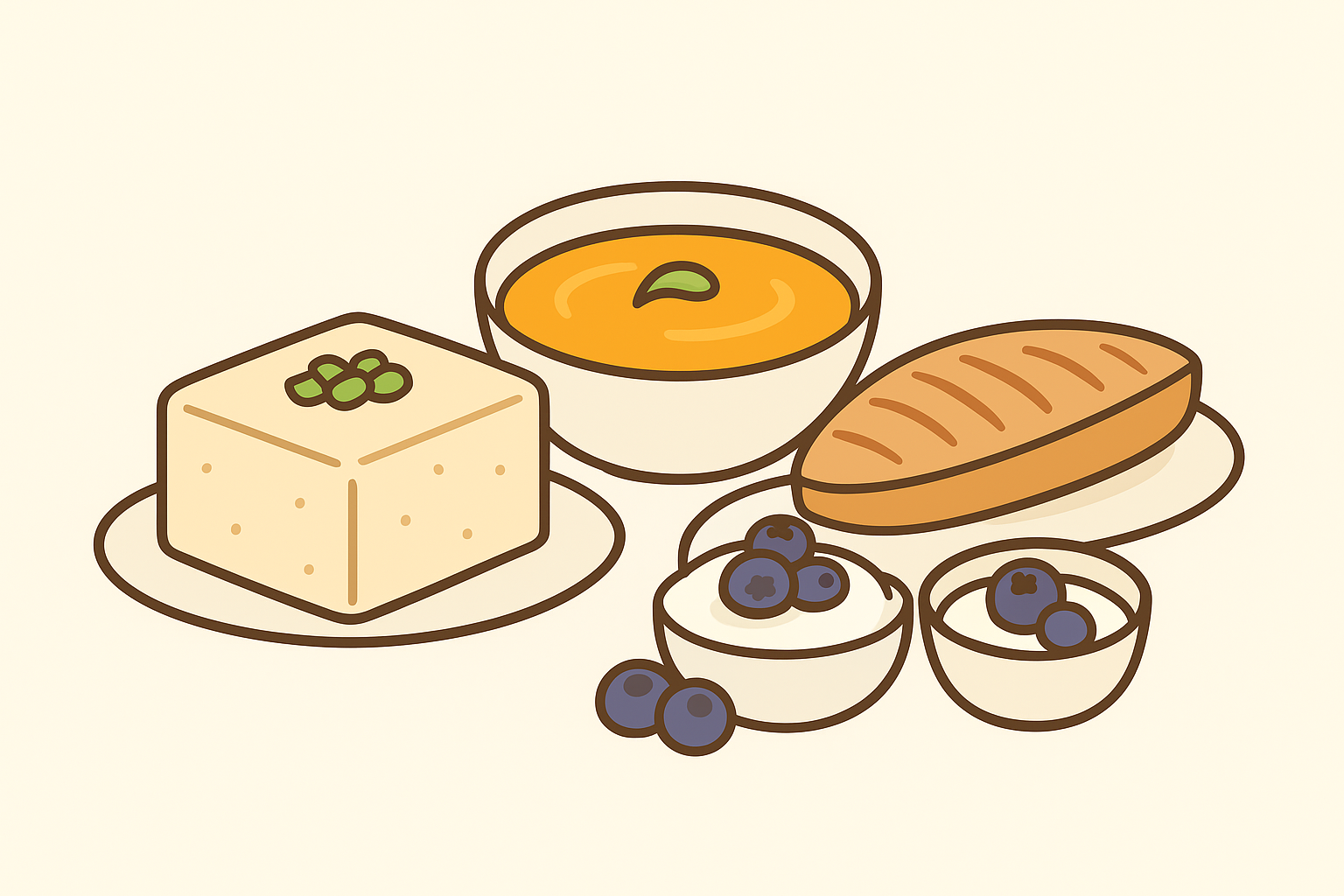 - 부드러운 단백질 식품 : 두부, 달걀찜, 흰살생선은 삼키기 쉽고 소화가 잘됩니다.