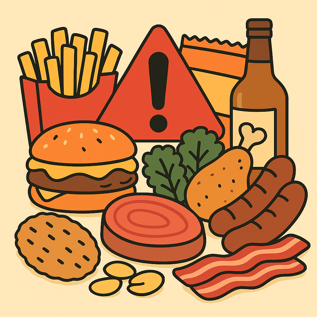 • 가공육: 소시지, 햄, 베이컨 → 포화지방과 나트륨 과다